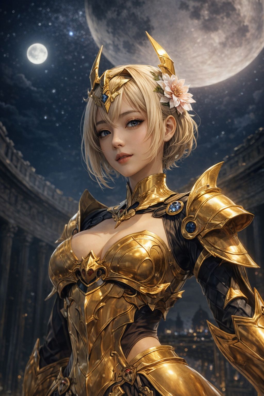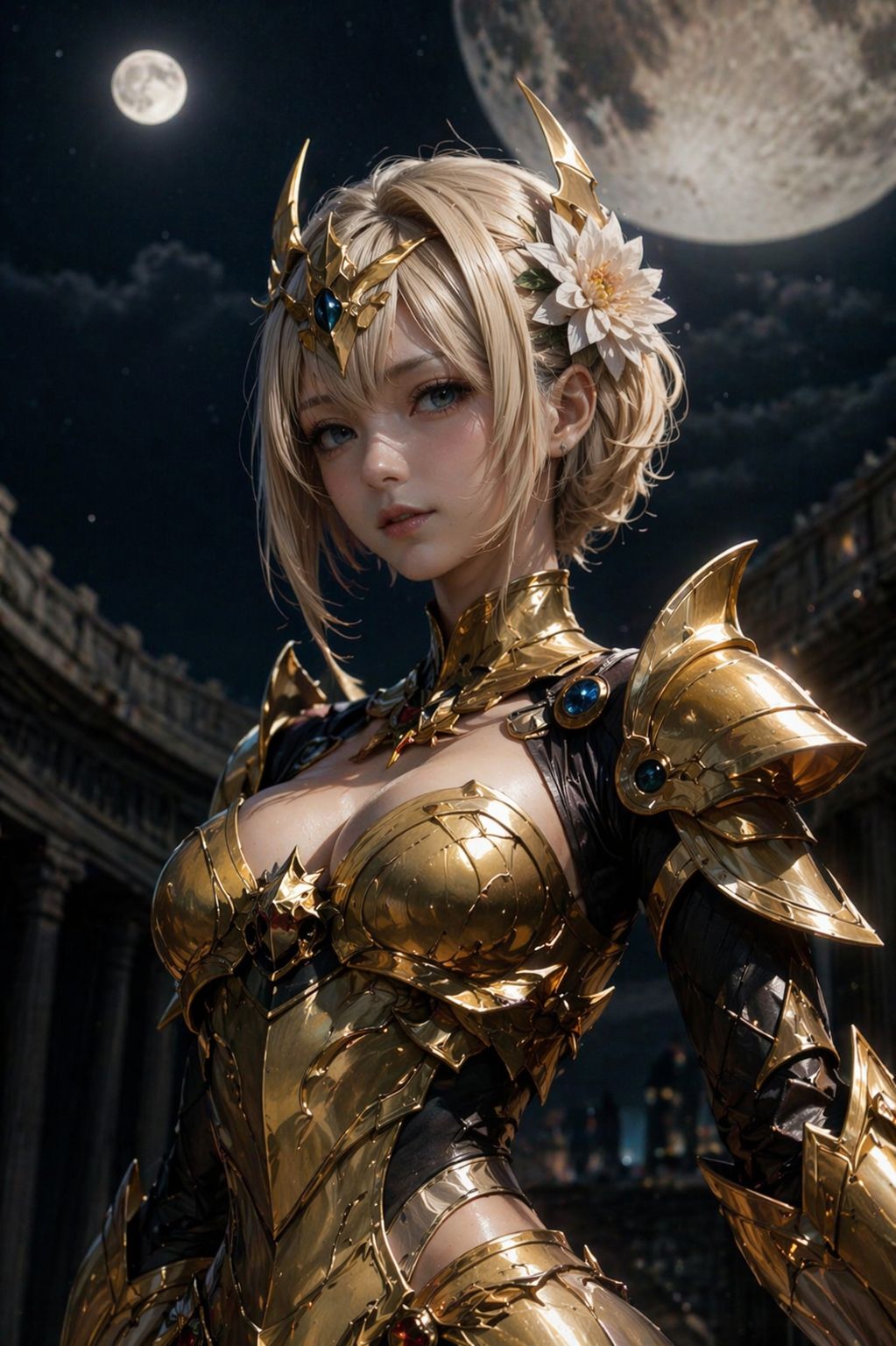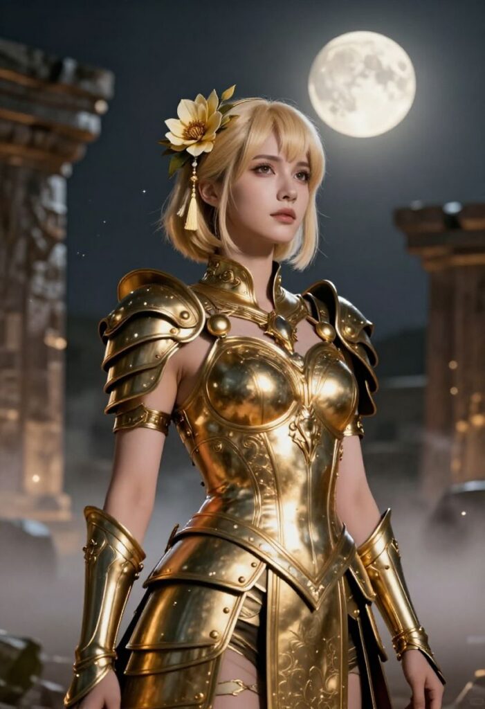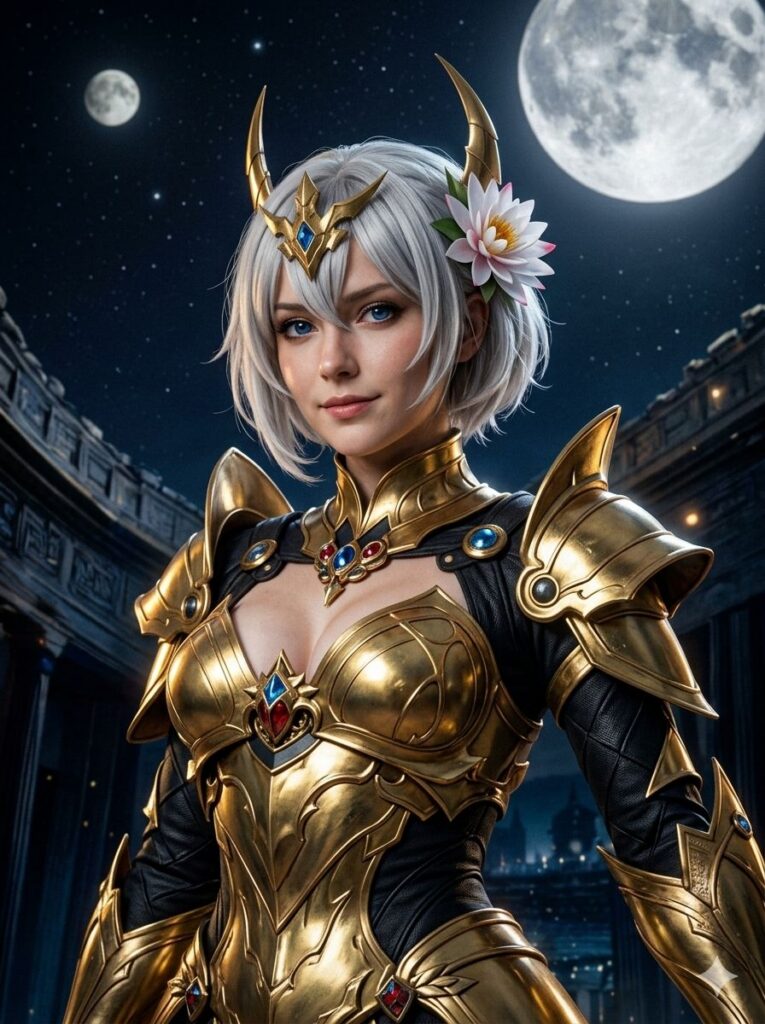 ではなく w、圧倒的な ChatGPT さんの描画力!元絵の雰囲気を残しつつも、実写化した際の各質感、情報量の多さ…特に肌や、鎧もそうですが、髪飾りの花の質感を見ると、他の二つと比べても明らかに次元が違います。