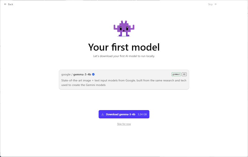次に設定を聞かれますが、「Start local LLM service on login」(LLM サービスをログオン時に起動する)は、あとで LM Studio の設定からは自動起動を切ることができないので、切っておきましょう。