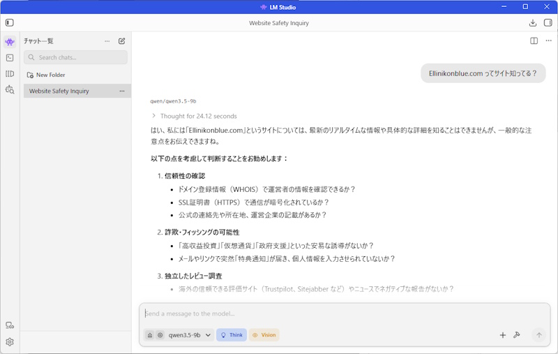 考えてる時間はやはり、Gemini さんや Copilot さんなどの、ウェブサービスには及びませんが、このローカルにいる Qwen さんには、Gemini さんや Copilot さんにはできない内緒話を、無償でできるというのは、増えた話し相手としてはメリットを感じます。