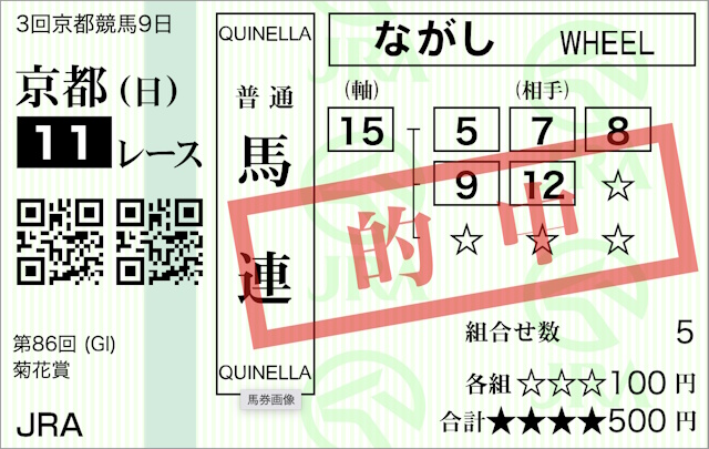 主役不在、どれが勝ってもおかしくない混線の菊花賞という戦前の評価でしたが、終わってみれば、青葉賞馬 エネルジコ、神戸新聞杯馬 エリキング、ラジオ NIKKEI 賞を勝ったエキサイトバイオと、残念ながら京都新聞杯馬 ショウヘイは及びませんでしたが、重賞ホースをボックスを買ってれば当たってたという結果。これも競馬ですよね…
