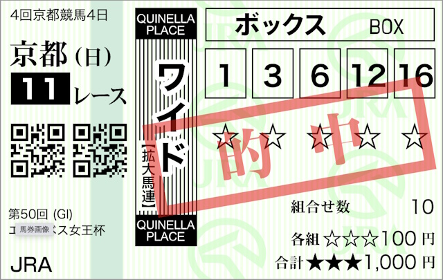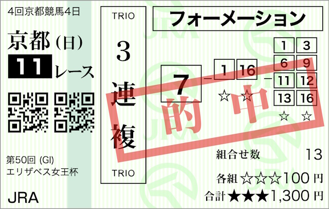 個人的には◎ レガレイラ、○ パラディレーヌ、▲ ライラックで、この秋、初めての会心の大勝利です! (^^)b