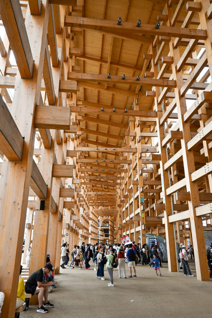 狙っていた GUNDAM NEXT FUTURE PAVILION はもちろんですが、結局、入場予約もうまくいかず、フリーで入れるパビリオン以外の、人気のパビリオンにはどこにも入れませんでしたが、趣向を凝らしたパビリオンの建築物を見て、大屋根リングの上をあるくだけでも、雰囲気は味わえ、いい散歩になったというか、暑さと人混みで疲れ切った充足感だけは味わえました (^^;A